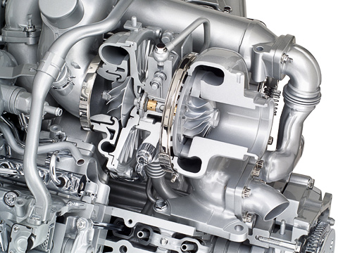 Но и на этом конструкторы не успокоились. Естественно, чем городить две турбины, гораздо проще обойтись одной. Надо только сделать так, чтобы турбина одинаково эффективно работала во всём диапазоне оборотов. Так появились турбины с изменяемой геометрией. Здесь и начинается самое интересное. В зависимости от оборотов поворачиваются специальные лопатки и варьируется форма сопла. В результате получается «супертурбина», хорошо работающая во всём диапазоне оборотов. Идеи эти витали в воздухе не один десяток лет, но реализовать их удалось относительно недавно. Причём сначала турбины с изменяемой геометрией появились на дизельных двигателях, благо, температура газов там значительно меньше. А из бензиновых автомобилей первый примерил такую турбину Porsche 911 Turbo.